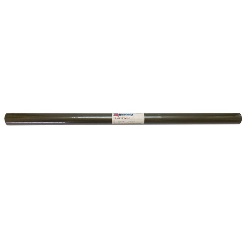 Olive green iron on covering film for RC plane wings and fuselages, applied with heat for a clean and smooth finish.