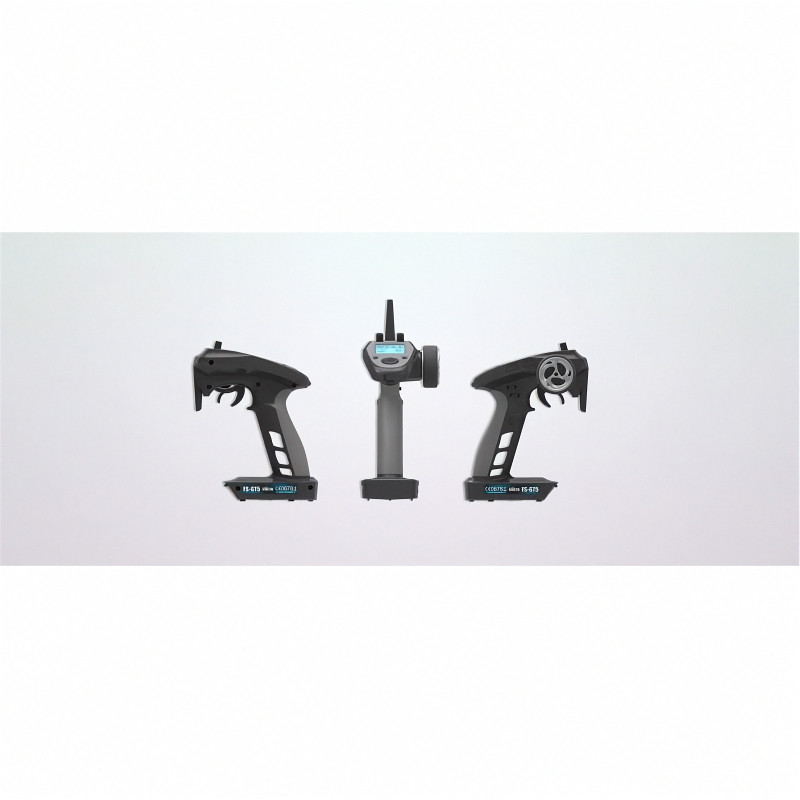The FlySky FS-GT5 is a 2.4GHz 6 channel AFHDS 2A pistol radio set for RC cars and boats, supplied with the FlySky FS-BS6 6 channel gyro stabilised receiver.