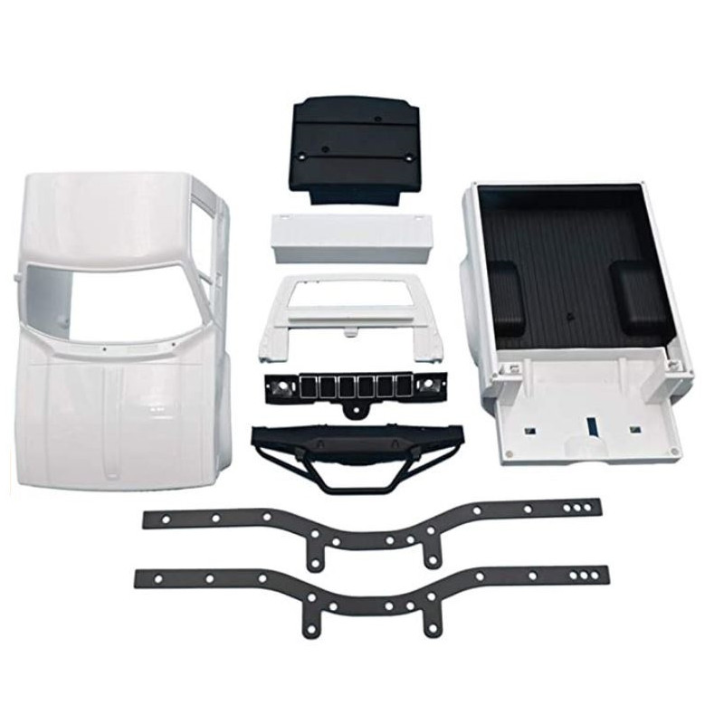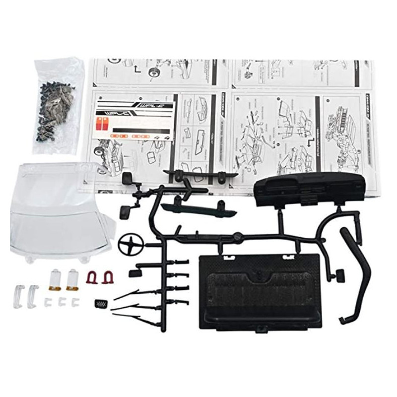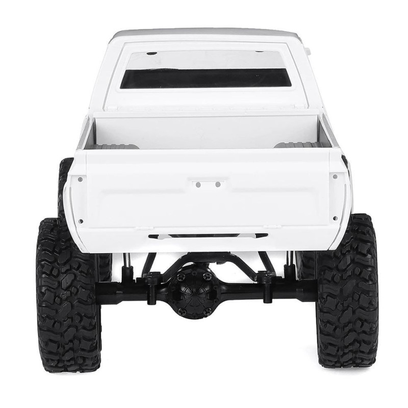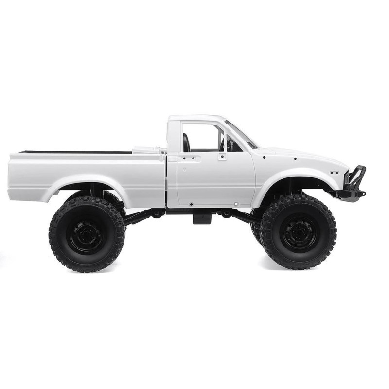 The hard plastic pickup body gives the WPL C24 a classic scale look and can be detailed further with paint, weathering and accessories if you want to personalise it. Underneath, the ladder frame chassis, 4WD drivetrain and separate electronics make it a genuine hobby grade platform with a long list of upgrade parts available, including metal axles and links, oil shocks, stronger steering servos and even brushless conversions. Out of the box you get the assembled truck, 2.4GHz transmitter, drive battery, charger and manual, so you only need to add AA batteries for the transmitter and you are ready to hit the trail.