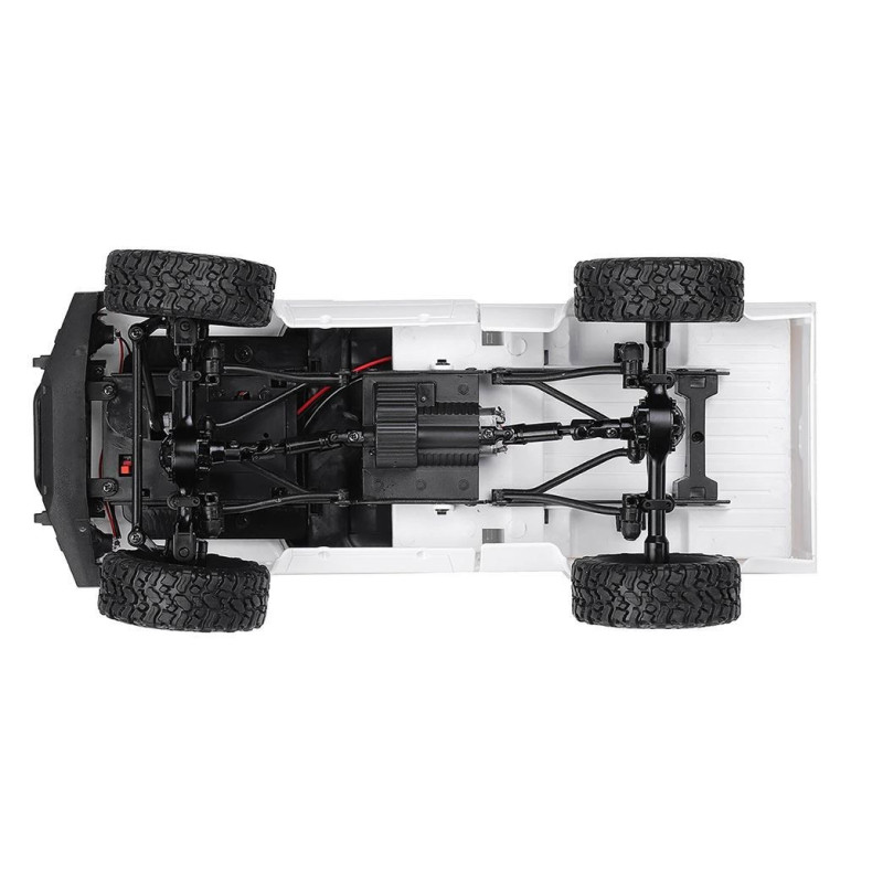 Power comes from a 7.4V 500mAh Li-ion pack that delivers roughly 25 to 30 minutes of use on typical trails, with a charge time of about 180 minutes using the included charger. The C24 runs at around 15 to 20km/h flat out, but its real strength is slow, controlled crawling where the soft tyres, locked axles and suspension travel let it pick its way over uneven ground. At 1/16 scale, with a length of about 31cm and weight around 1300g, it is easy to carry in a backpack and run almost anywhere, from garden rockeries and office obstacles to proper outdoor crawler courses.