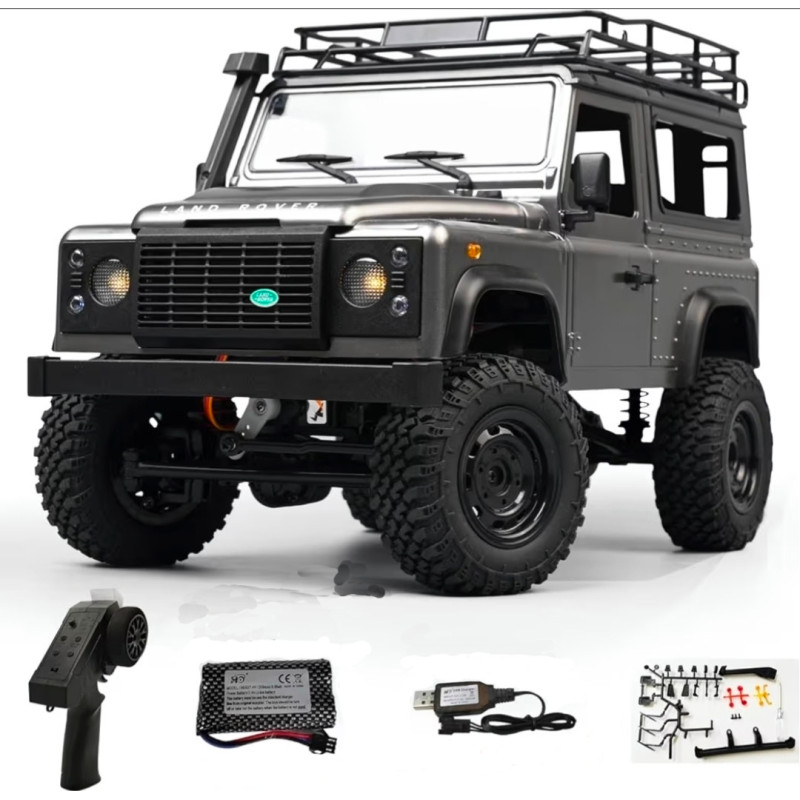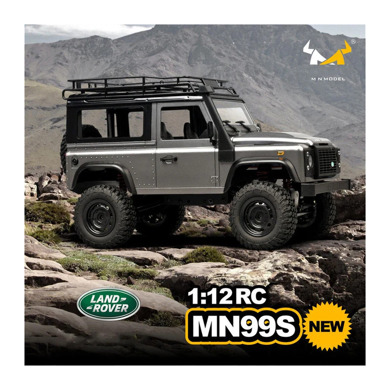 The MN99S Land Rover Defender D90 4WD RTR 1/12 Truck Crawler is a highly detailed small scale replica of the classic Defender 90 finished in silver. The ABS hard body and interior capture the proportions and lines of the real truck, while the 4WD crawler style chassis underneath provides proper off road capability. A brushed motor, low gearing and locked style axles give the MN99S enough torque for slow technical driving, and the 2.4GHz radio with proportional steering and throttle lets you place the wheels accurately on rocks, roots and garden obstacles.