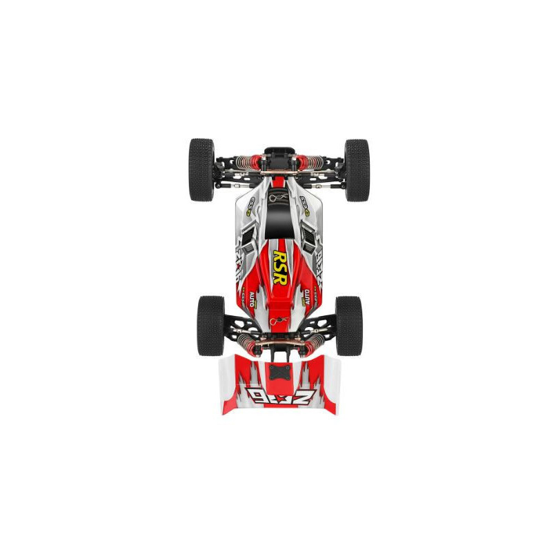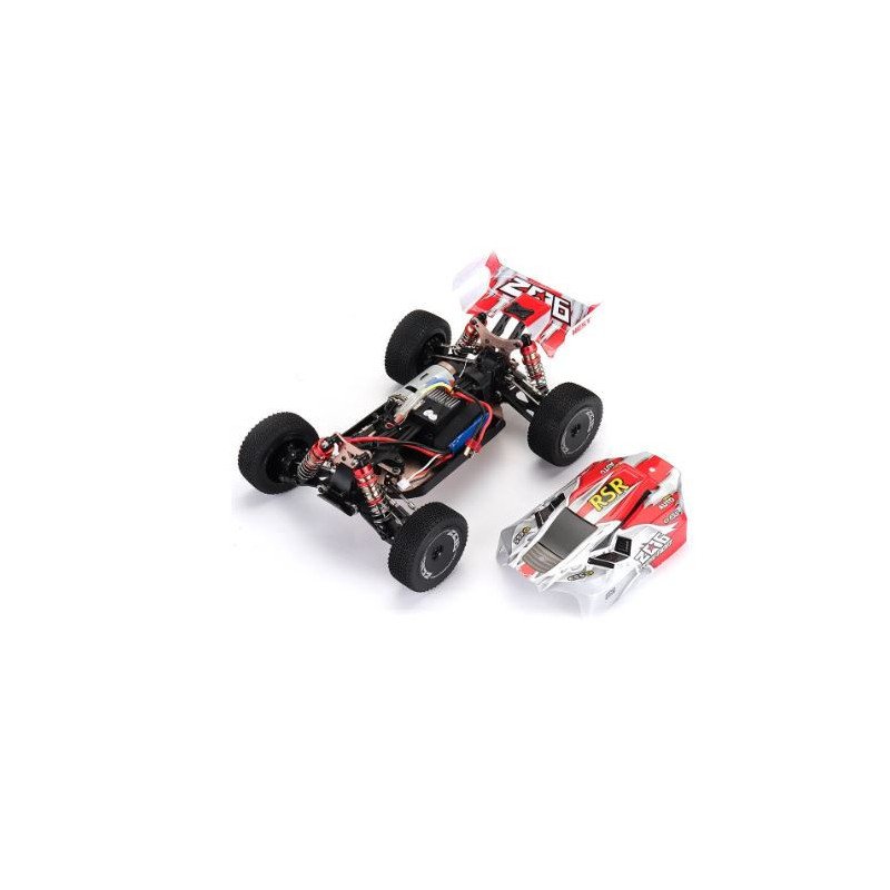 The WLtoys 144001 is a 60km/h 1/14 scale 4WD brushed electric buggy designed for high speed off road bashing on dirt, gravel, and short grass surfaces.