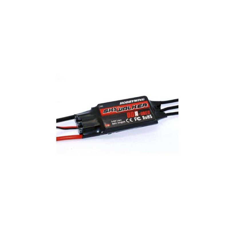 The Hobbywing Skywalker 80A V2 is a brushless ESC for RC fixed wing aircraft, designed for 3 to 6S LiPo setups with a built in 5V 7A BEC.