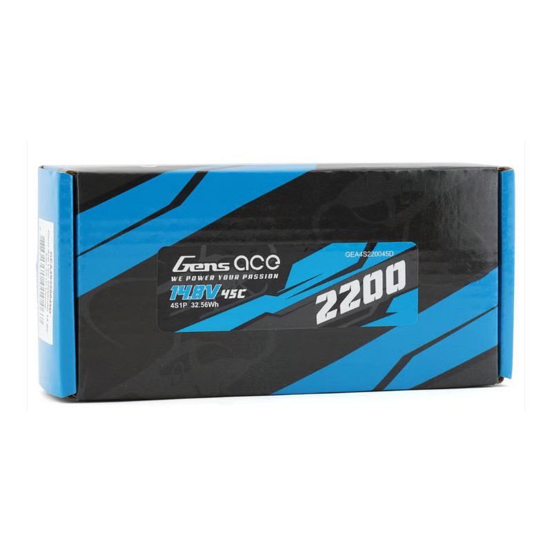 The Gens Ace 2200mAh 14.8V 4S 45C LiPo battery is a high discharge power pack designed for RC aircraft and performance RC models, offering reliable output and consistent voltage under load.