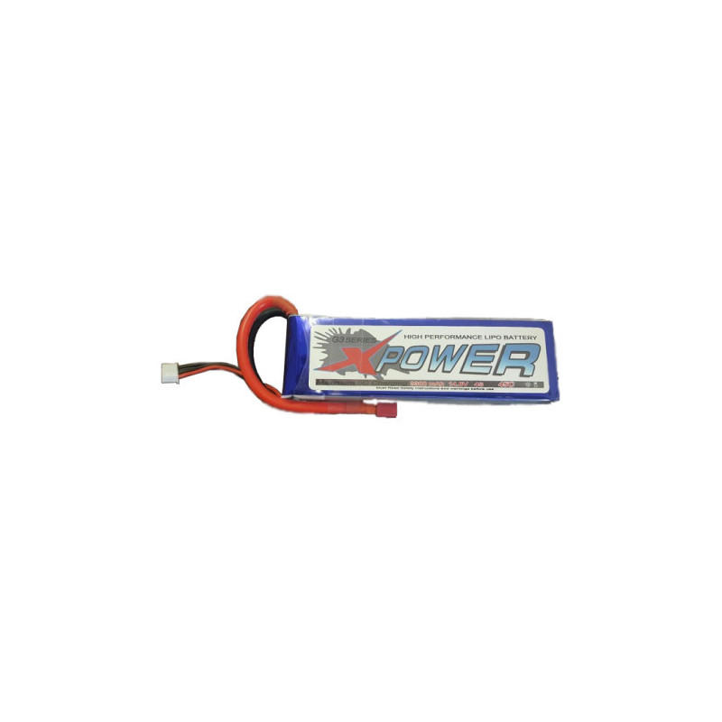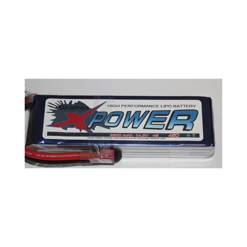 The XPower 3300mAh 14.8V 4S 45C LiPo battery with Deans connector is a high capacity 4-cell power pack designed for stable performance in RC aircraft, cars and boats requiring reliable 4S power.