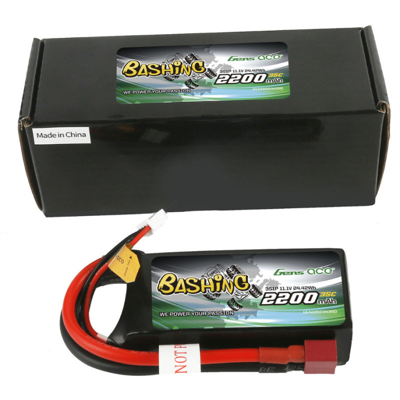 The Gens Ace Bashing 2200mAh 11.1V 3S 35C LiPo battery with Deans connector is designed for everyday RC bashing use, providing reliable power and balanced performance for compatible cars, aircraft and boats.